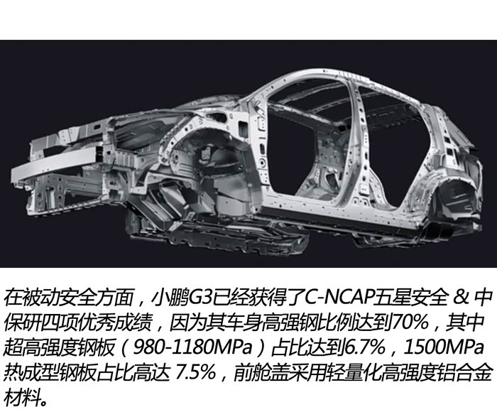 尤其是车身结构上,采用多传递路径和多环状球笼式结构,环形结构互为支撑,拥有刚性强,结构稳定等特点,小鹏G3i也延续了这一安全优势,继续保持着强大的被动安全性能。