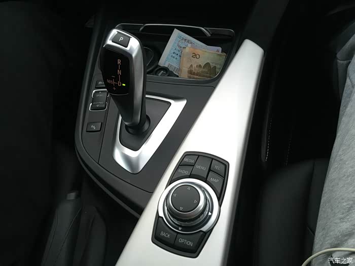 小鸡腿,左侧是模式选择,普通 ECO 运动,右侧是 iDrive