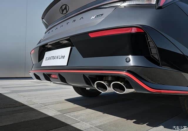 当车尾横贯式尾灯亮起时,红色灯光又与底部饰条相呼应,再加上包括尾翼、轮毂、车标等多处熏黑处理,战斗风格很是强烈。进气格栅、翼子板、轮毂盖等多处都有N Line专属标识,以彰显区别于普通版伊兰特的身份。