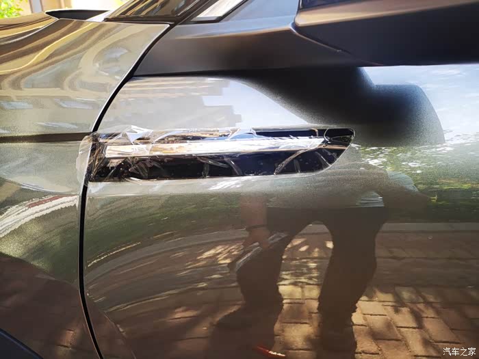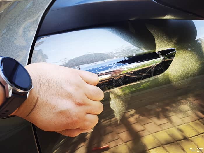 万事开头难,有了第一次的贴标经验,再贴小的侧标就比较得心应手,贴之前一定看说明书,小的高度跟长的保持一致就行,底面跟车门边缘一齐即可,贴好之后使劲按压。同理另一侧按照刚才的步骤重复一遍,贴侧标最重要的是确定高度,关乎侧标跟车门的贴合度。
