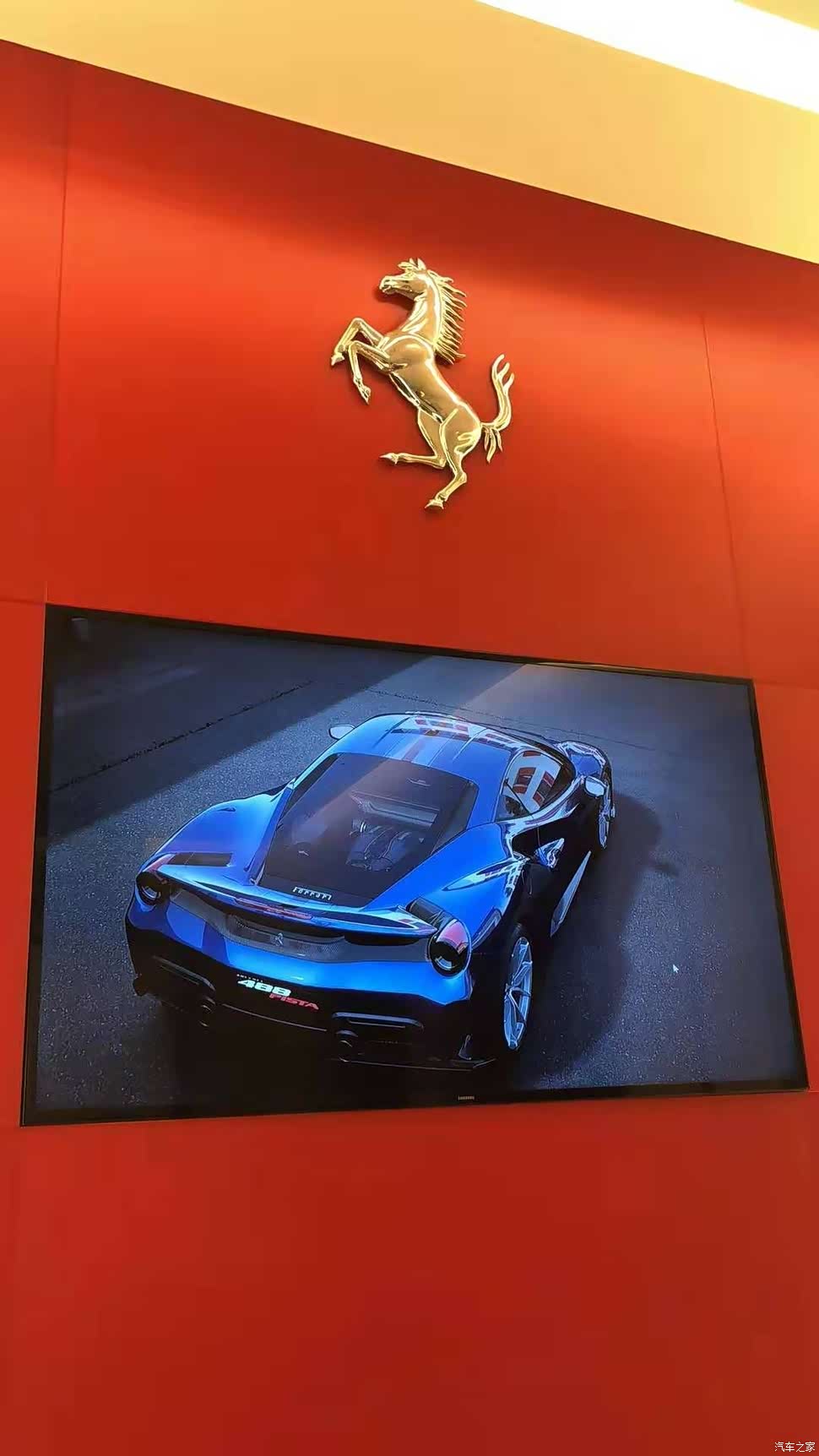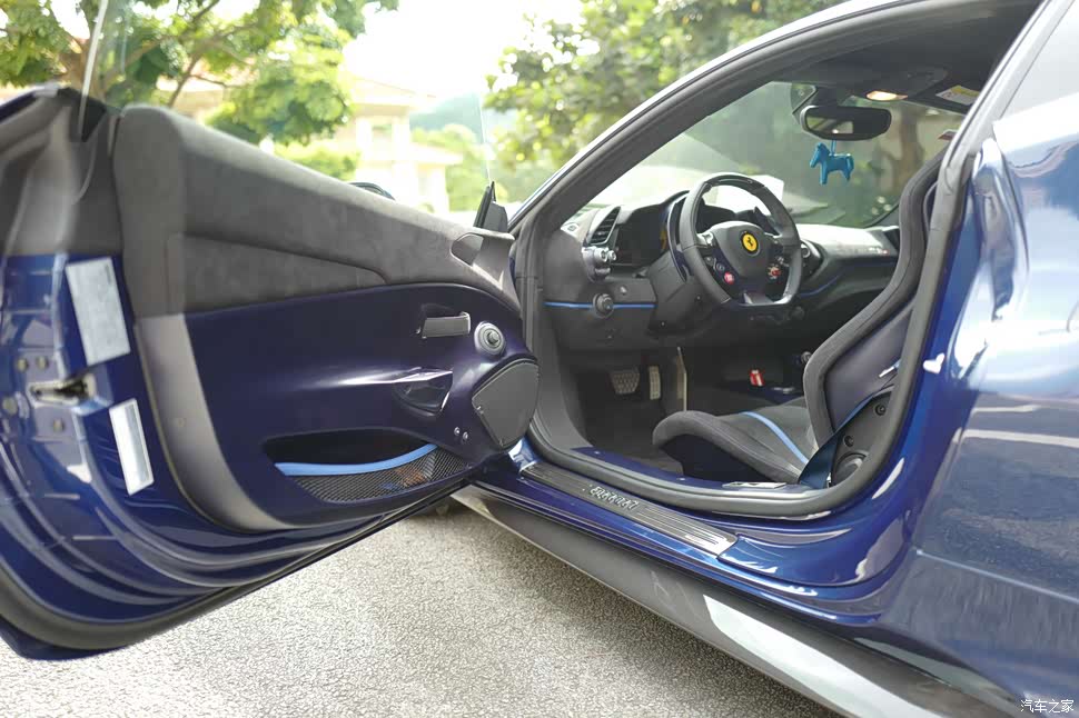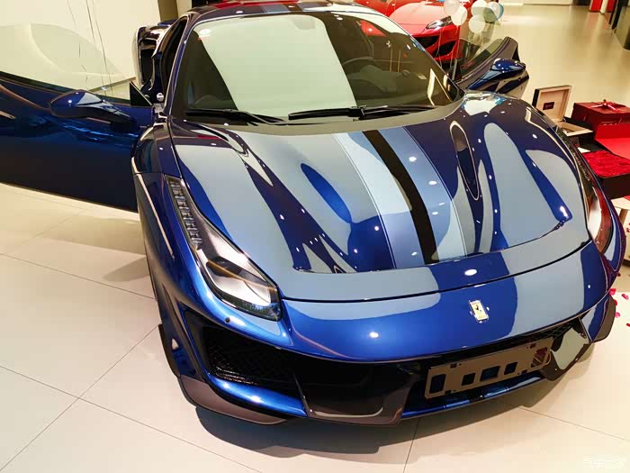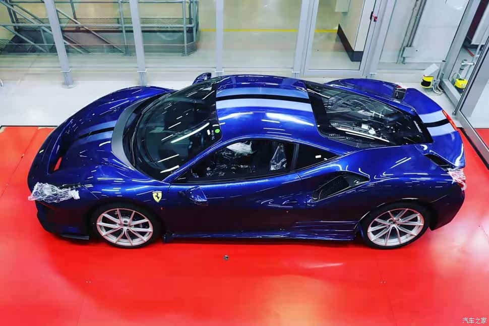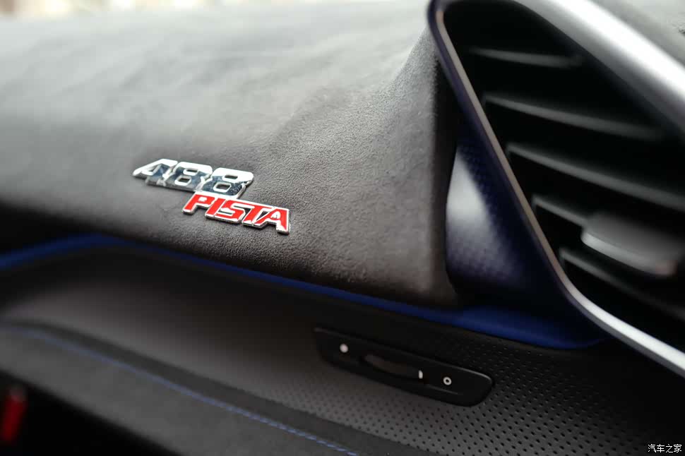 地毯上488 PISTA蓝色的字样。