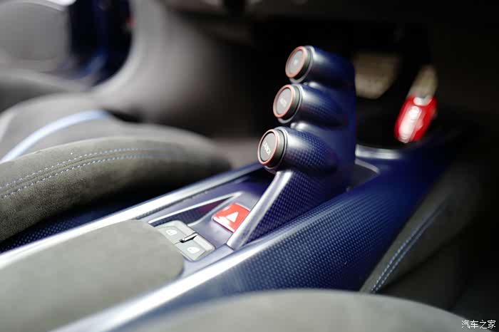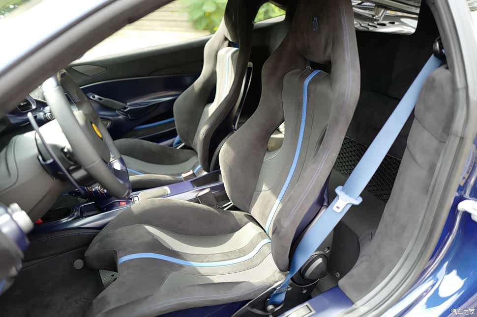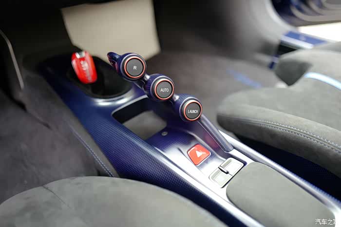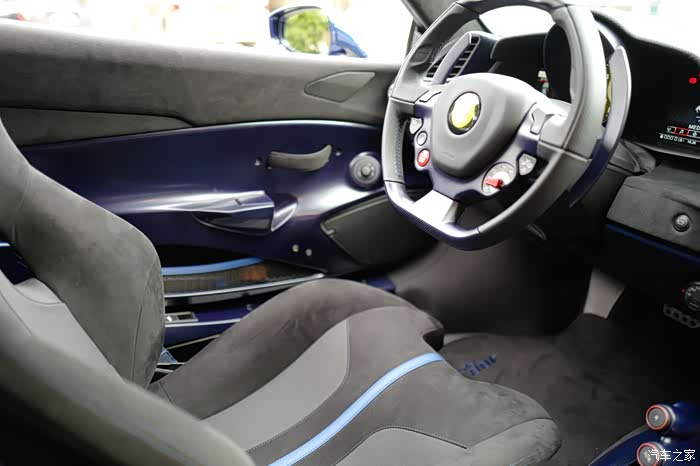 这里划个重点,我给这台车赋予最漂亮的配置,就是蓝色碳纤维内饰。