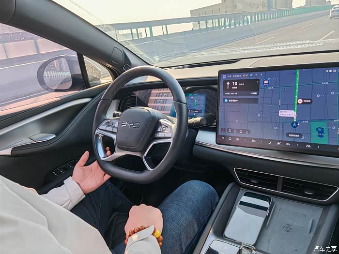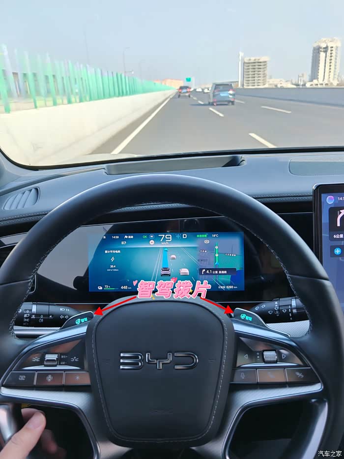 🌸轮到我试驾了,系好安全带准备出发,上匝道时系统提示智能领航可开启,轻轻拨一下任意一侧的智驾拨片,即可开启智能领航,非常简单,看一遍就会了😄,海狮07EV自主上匝道拐弯很丝滑,方向盘自动缓慢旋转太神奇了,汇入主道时,打转向灯、提速果断汇入,一气呵成,将智能化展现的淋漓尽致,遇到慢速车时,跟车变道也非常丝滑,在确保安全前提下快速完成变道超车,全程零接管,系统会计算出最优路线,同时实时应对各种复杂路况环境,天神之眼智驾系统是长途驾车的好帮手。