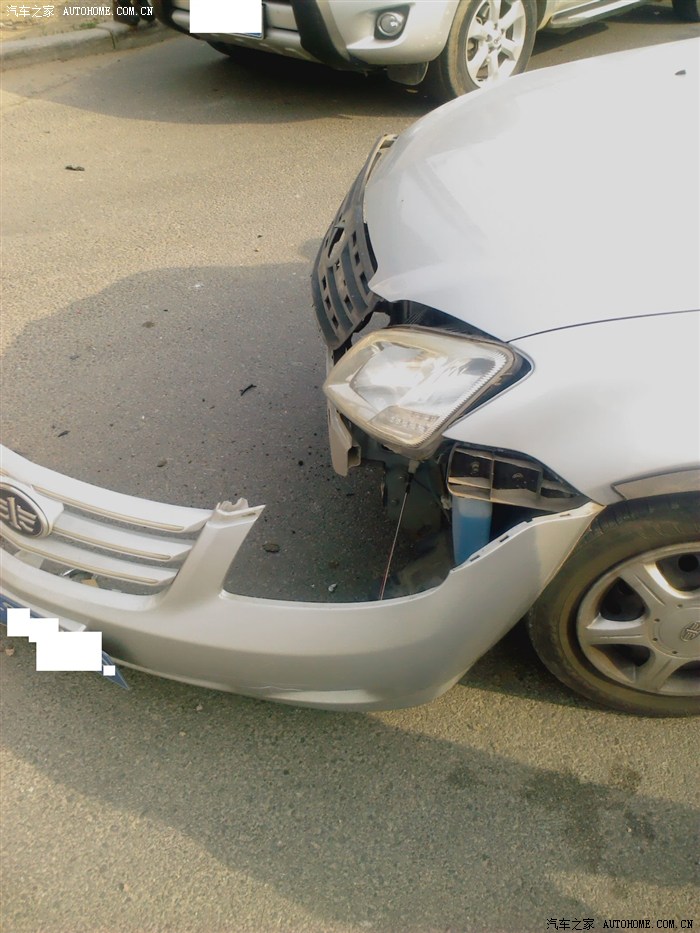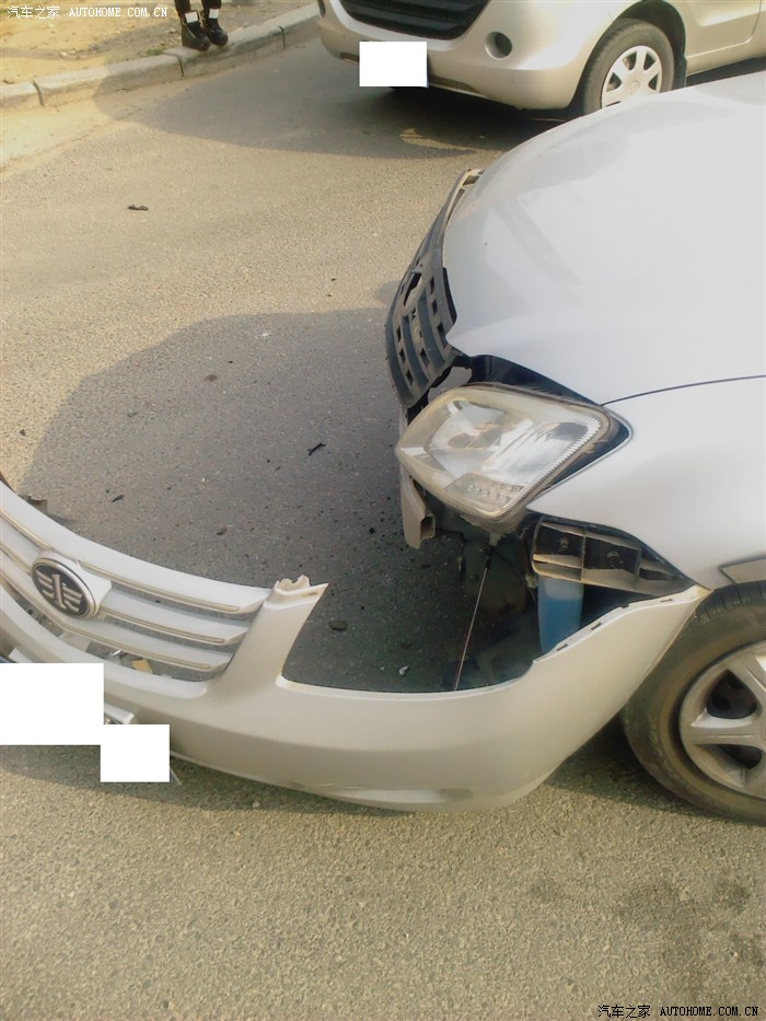 2013.4.27早晨7:35和往常一样开车上班,7:50途径国道(限速70,时速60)行至一无信号灯乡村交叉十字路口时发现一辆轿车试图抢行通过,出于本能反应我猛打方向向右躲避,这时夏利N5还在前行,导致前杠结结实实撞在和悦后轮。由于惯性,和悦猛地向左漂移120度,我一直踩死刹车,距离路中央隔离墩40cm处车子停住了。我解开安全带下车查看车辆受损情况(和悦:轮眉擦伤,后杠擦伤,后轮倾斜变形。N5:前杠脱落破碎,前防撞梁变形,雾灯喇叭掉落,挡泥皮破碎,前机盖变形,进风口破碎,大灯脱落),淡定的走到对方车前:你报保险吧,你撞的我!。对方车主也吓蒙了,不停的找保单。当时夏利N5车上3人,无人受伤。