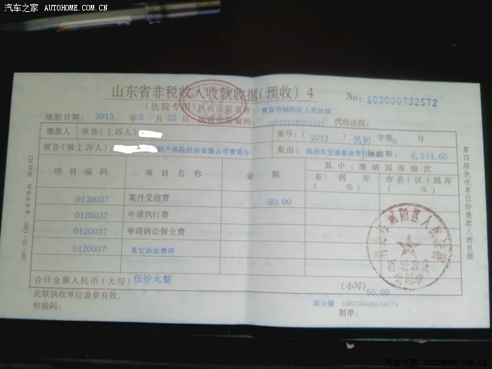 查询了下账户,只是把修车费和拖车费220元封顶给我,差了55元拖车费没给。想想这3个月来我每每想起这件事就上火,同时也给大家提个醒,出了问题一定多留意,多问。尽量私了,走正规途径耗费时间不说,最终也不会太圆满。今晚请朋友在城阳吃饭,以示庆祝。。。。。。。。。
