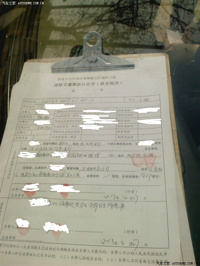 2013.5.11下午对方车主顶不住压力,终于回电,答应2013.5.14处理剩下的流程,最新进展会继续更新。