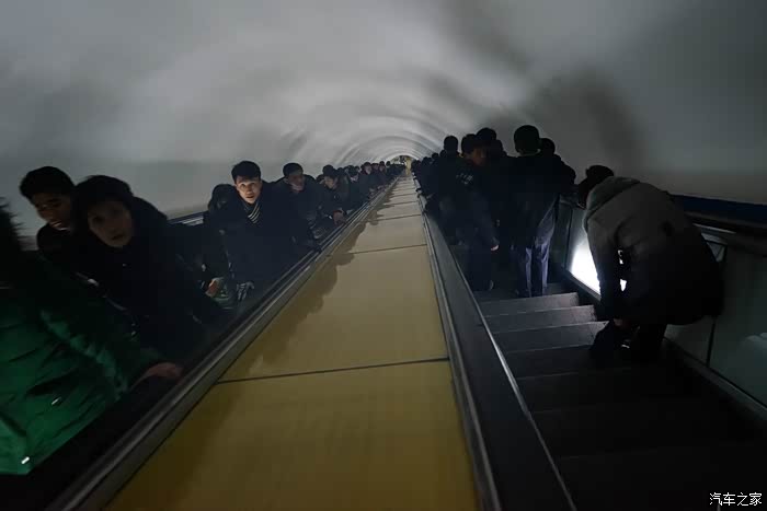 朝鲜的地铁就是深,真深,车和中国80年代的车差不多。