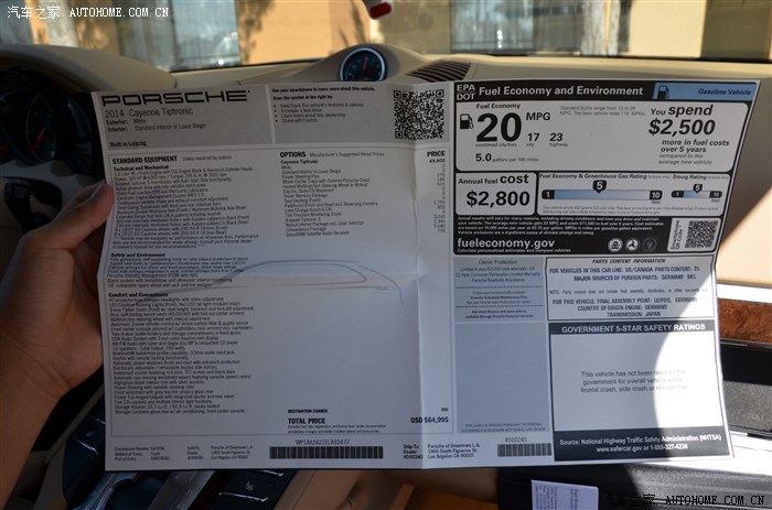 今天把Dealer给加的第一箱油给跑完了,加油时里程443英里(443*1.6=708.8公里)证明了这台3.6的发动机是非常省油的,家里的FX35(09款,3.5升V6)百公里至少要15,6个油。