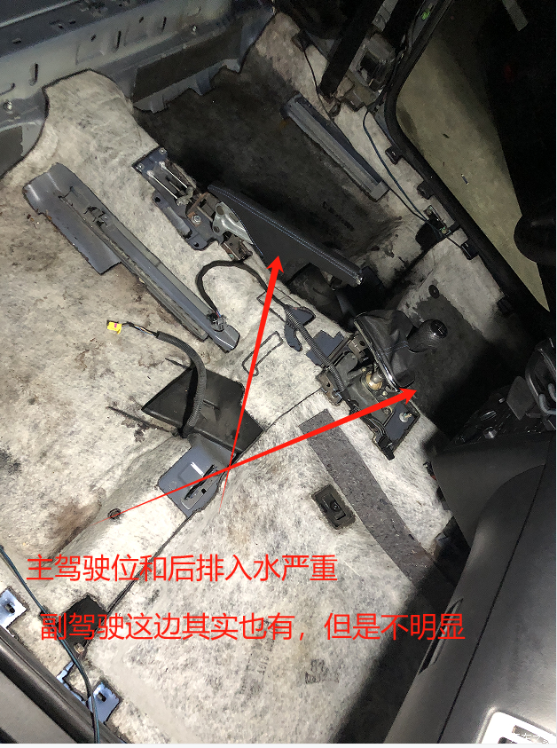 主要是前排水孔,前面不赌,就不会往后面跑,原车接头质量不行,我换了接头,然后把门铰链的出口割掉了,里面都是淤泥,清理干净后,天窗上倒水,排水非常顺利