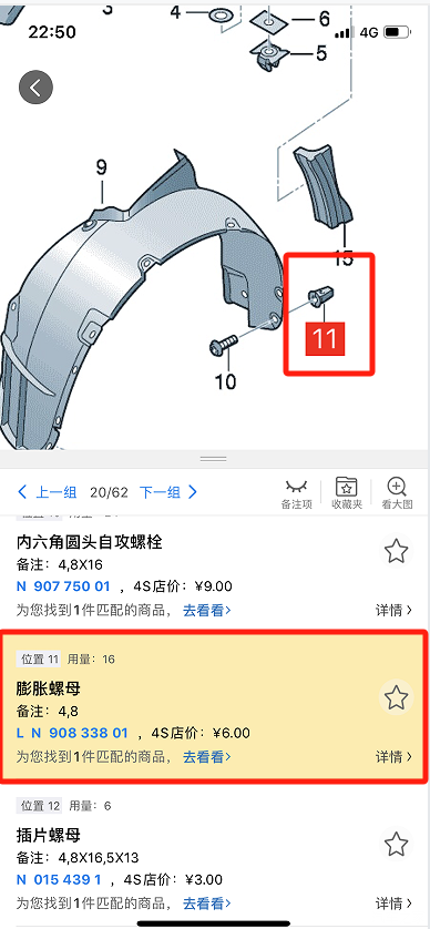 汽修宝上面查到零件编号,但是没有实物图。只能试一下按零件号买了。