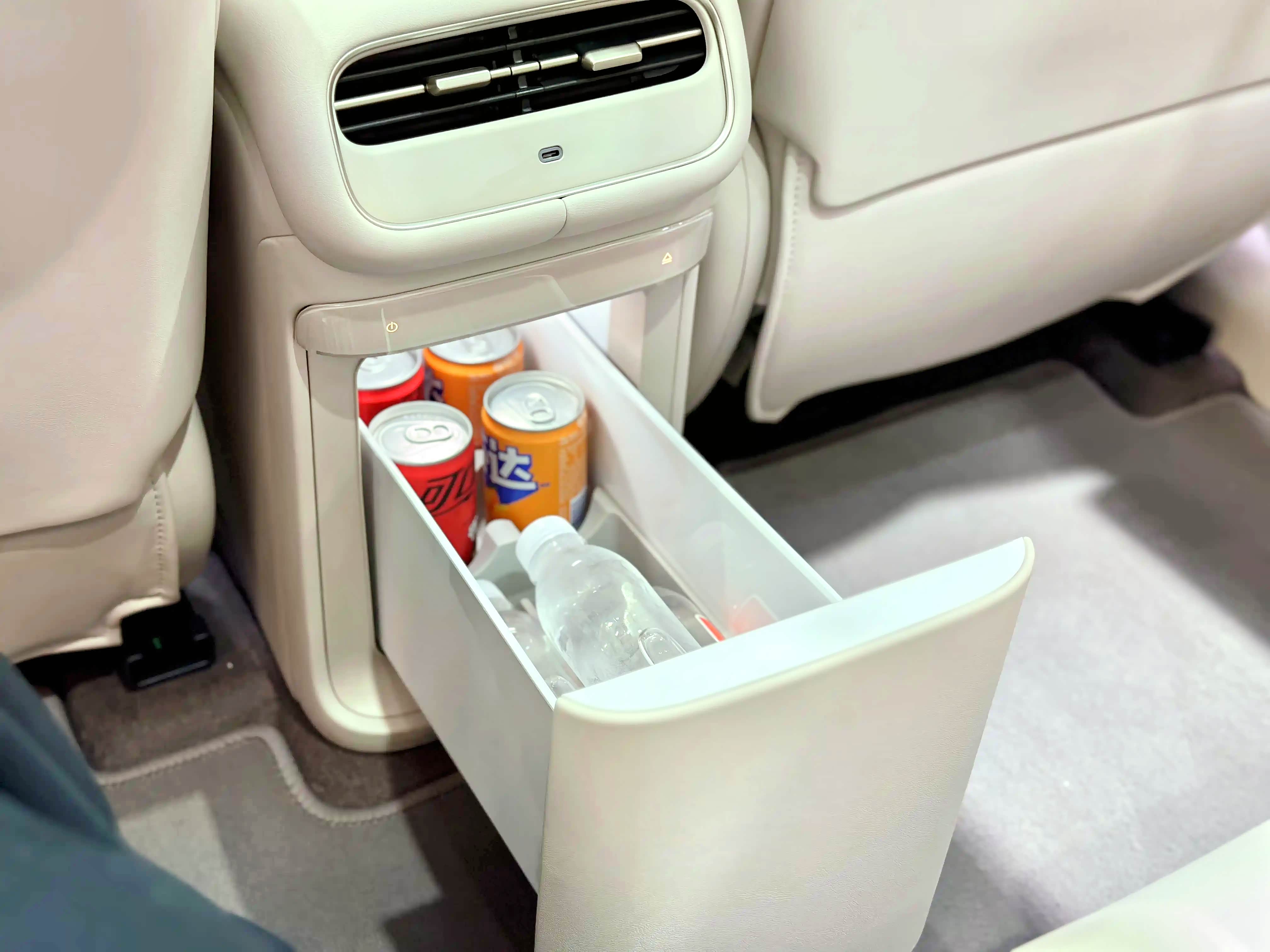 后轮转向、空气悬挂、动力够用和车载冰箱确实很实用。这车快5米长,但有了后轮转向,在市区掉头、停车灵活多了,像开辆小车一样灵活。空气悬挂让舒适度提升很明显。国庆期间他回了趟老家,往返 1500公里, 动力完全够用。他虽然选的不是顶配,但舒适模式深踩电门加速很平顺,高速超车毫不费力,运动模式的推背感还能偶尔满足驾驶乐趣。