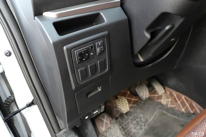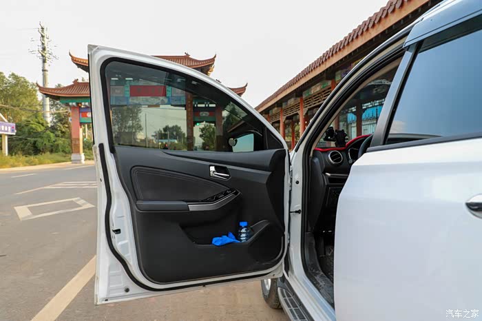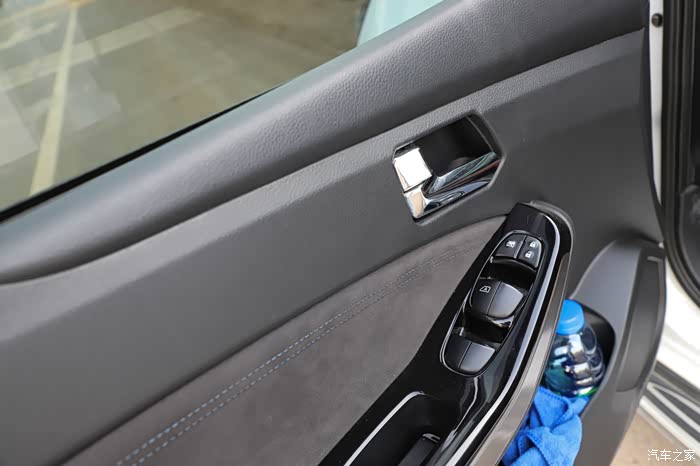 半包围的车门也比较大,并且有不错的储物空间,门板大部分采用的是塑料,中间缝线位置是部分的织布搭配,按键的手感很好,操作顺手,主驾驶支持一键升降。