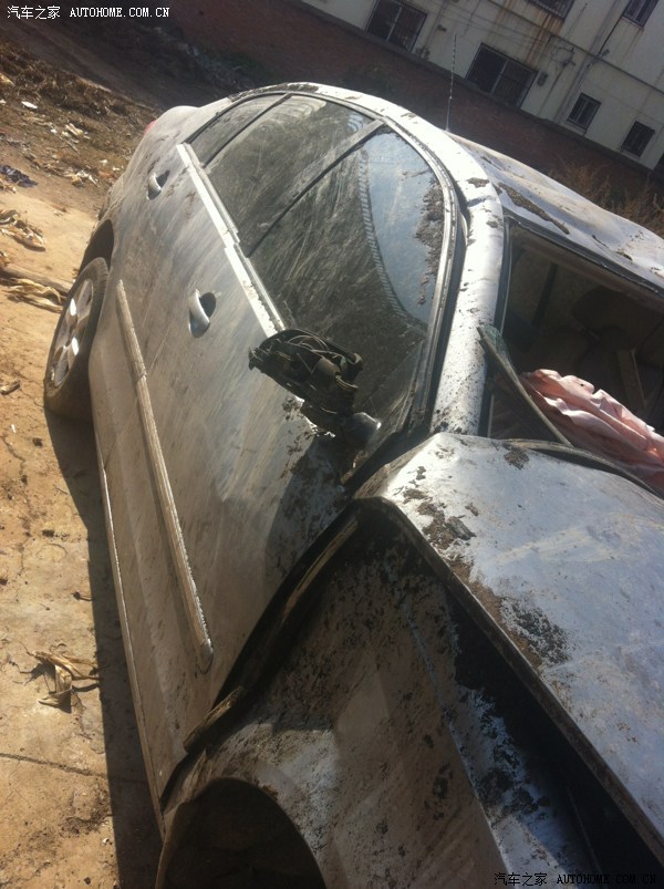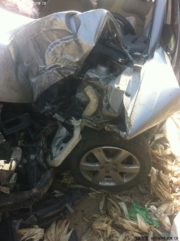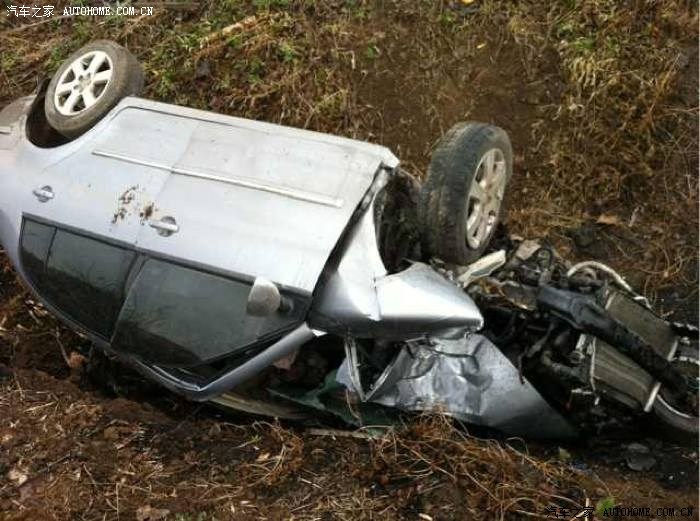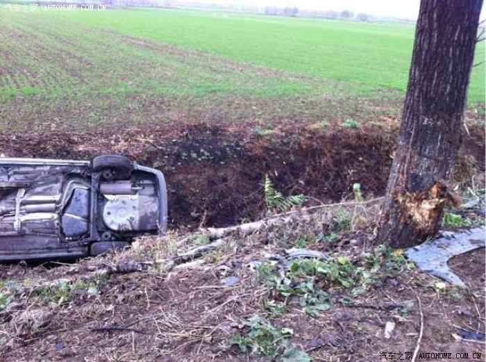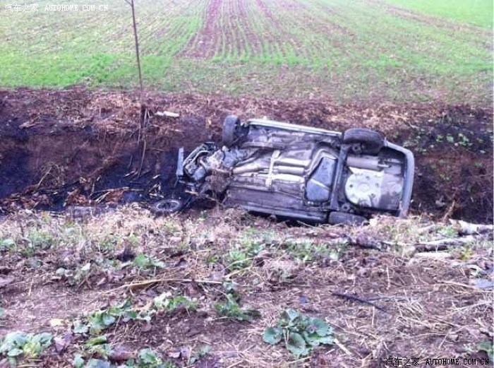 翻车后的一角,能看到左后轮。整算有个完整的轮子。