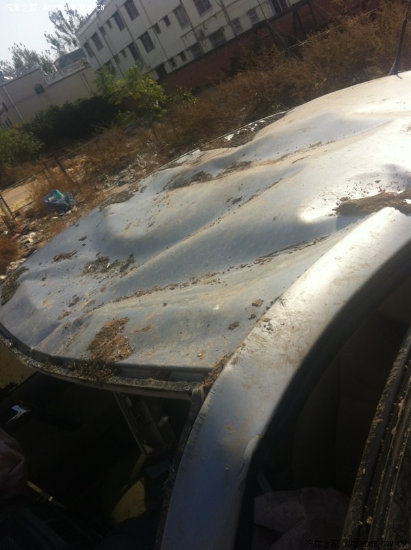 变形的车頂,別样的欣赏,脱落的树叶与沾上的尘尘土土