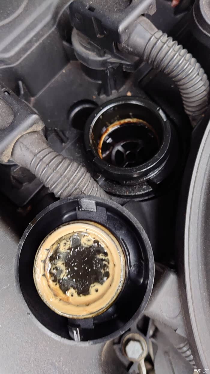 机油盖这个只要温度一冷,特别是零下3℃左右,基本都出现这种情况。为了验证不是短途导致,这张照片是跑了8Km后拍的,春节车少,全程起步地板油暴力驾驶,有一半时间速度100出头,好几次4档120。跑一圈下来机油盖上面还能明显看见水珠。发动机内部没有乳化情况,防冻液不少也没有油,内窥镜看气门室里面也正常。真不知道是什么原因。。。。