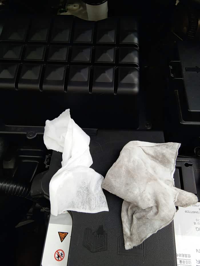 擦过空滤空滤盒的纸巾和没用过的纸巾对比,还是很脏的