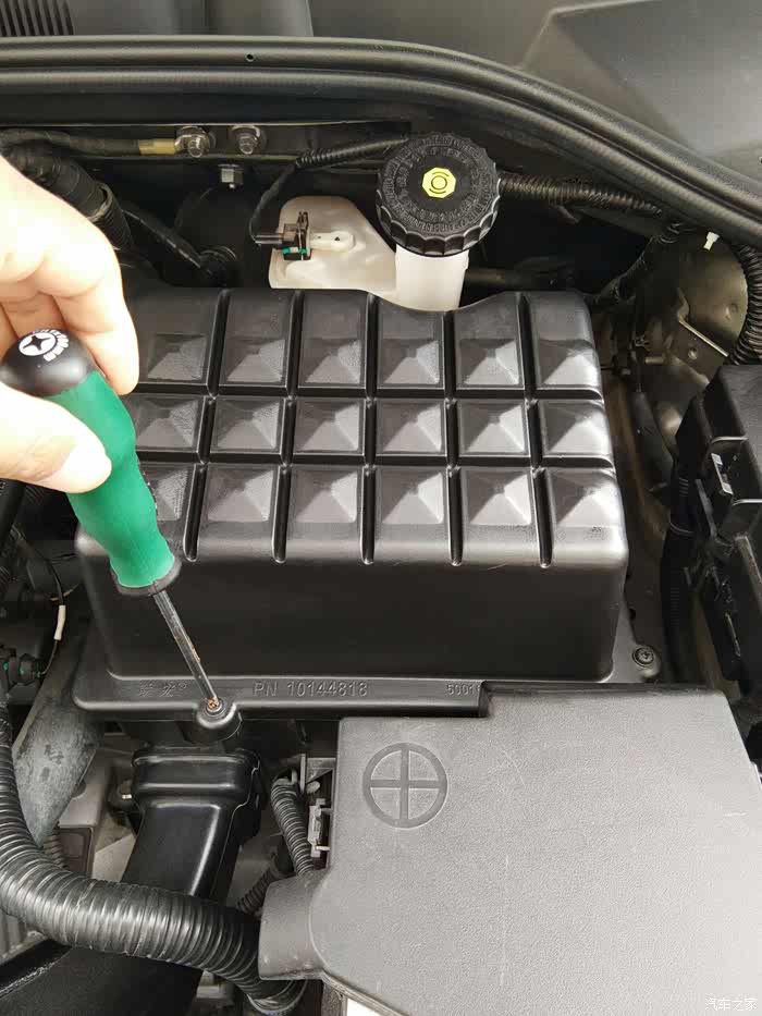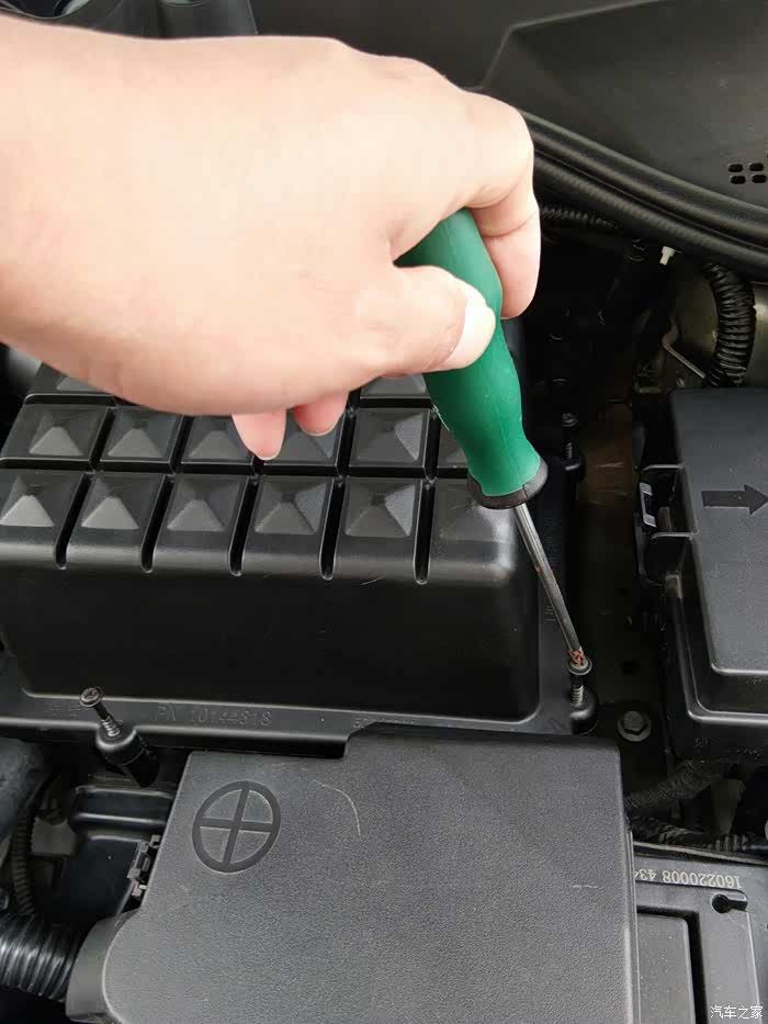 用十字螺丝刀拆下空滤盒周边五颗螺丝