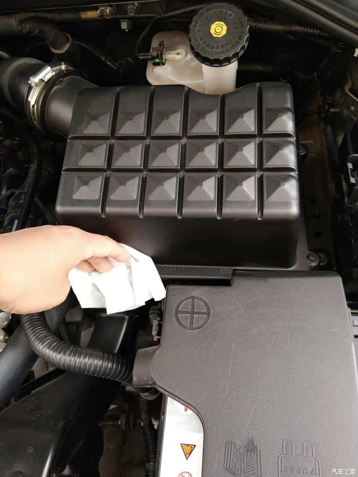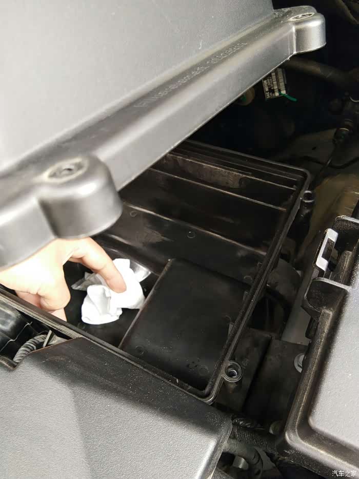 拿出来旧的空滤之后,我们把空滤盒里面用纸巾擦干净