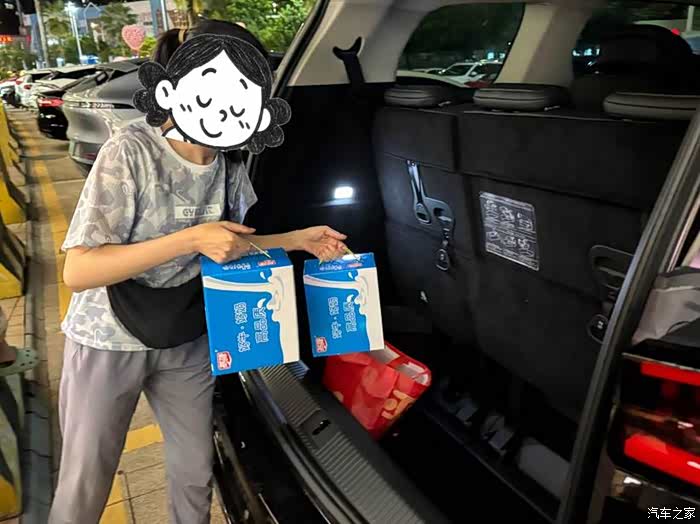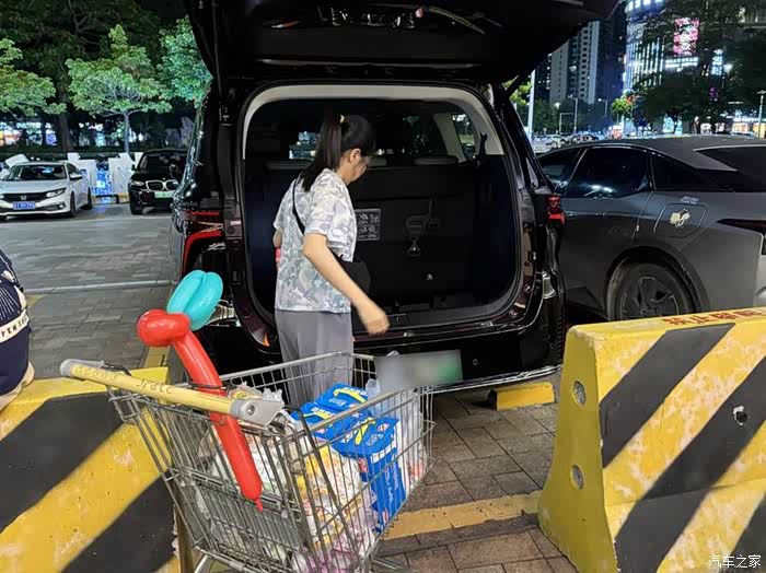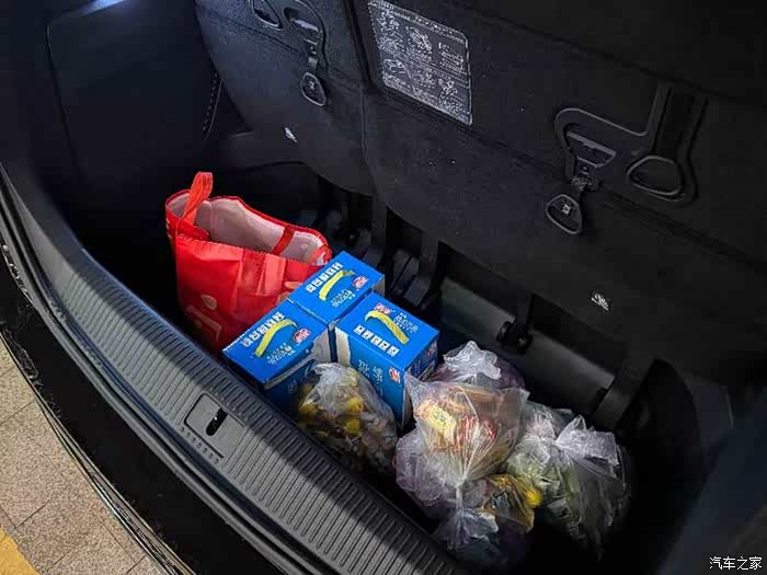 电动尾门一打开,老婆开始“码货”了: