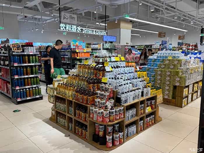 到超市了,在门口找了个比较空旷的地方把车给停好,这超市我很喜欢的一点,就是车位划得大,停我的星海V9够用。