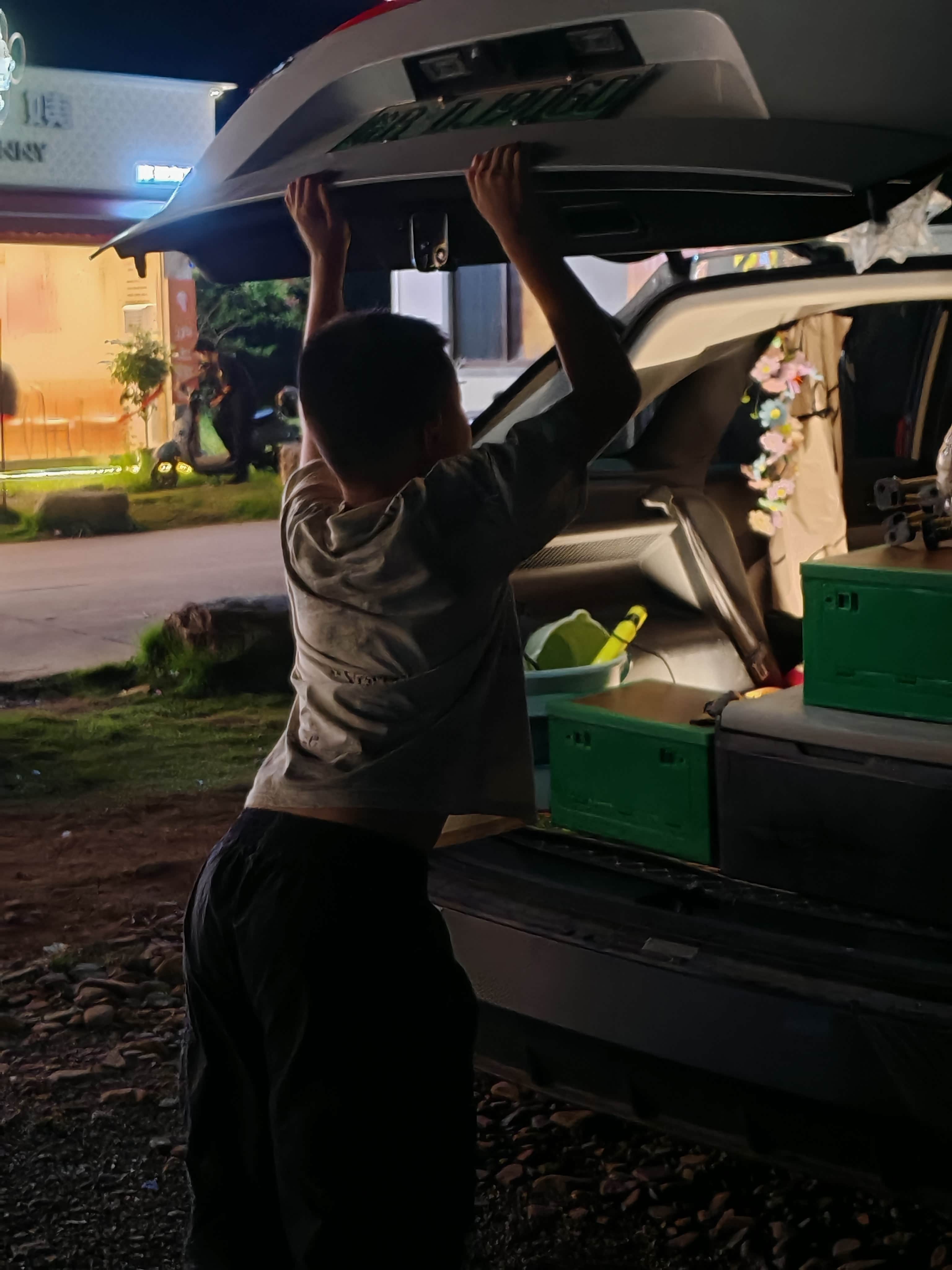 目光落在旁边的启辰VX6上,车身在暮色里泛着柔和的光。这车买了半年,总觉得它就是个代步工具,今晚却突然想探探它的“本事”:能不能把所有装备都塞进去,还不挤着我和小昊过夜?