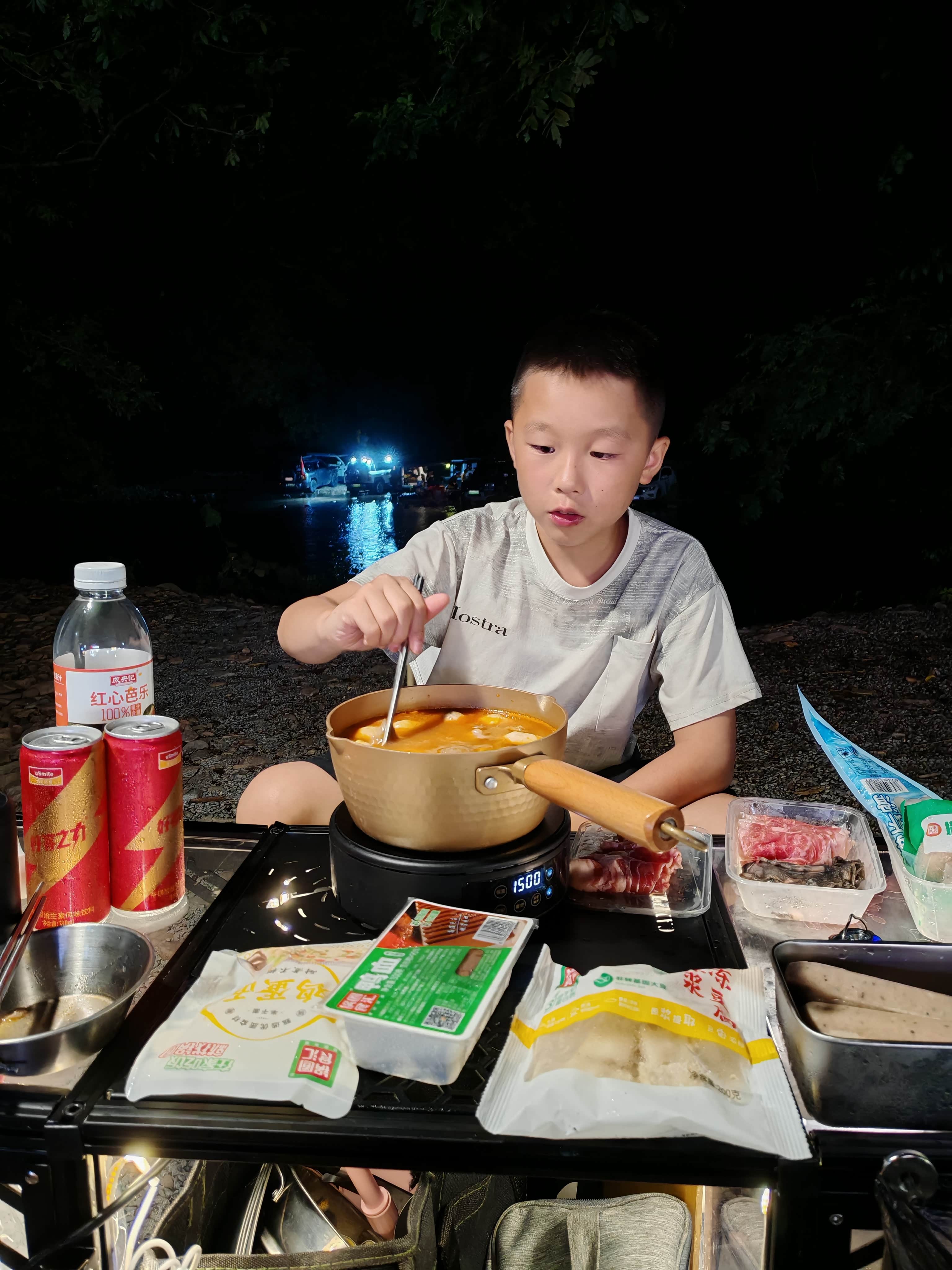 傍晚的风卷着草木香掠过秘境,我和小昊坐在折叠凳上,把最后一口虾滑咽下去。