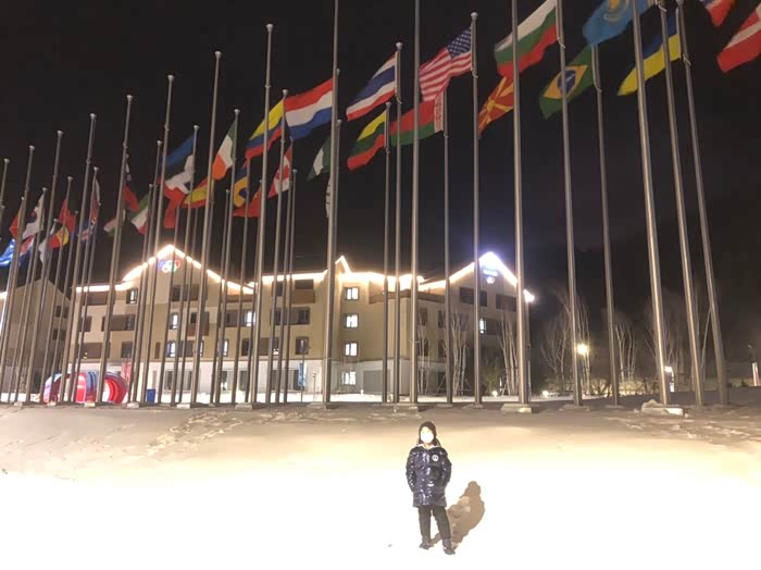 奥运村就在大跳台不远处,因为刚下完雪不久,奥运村里面积雪比较多,不能开车进入,带着孩子去里面看看!