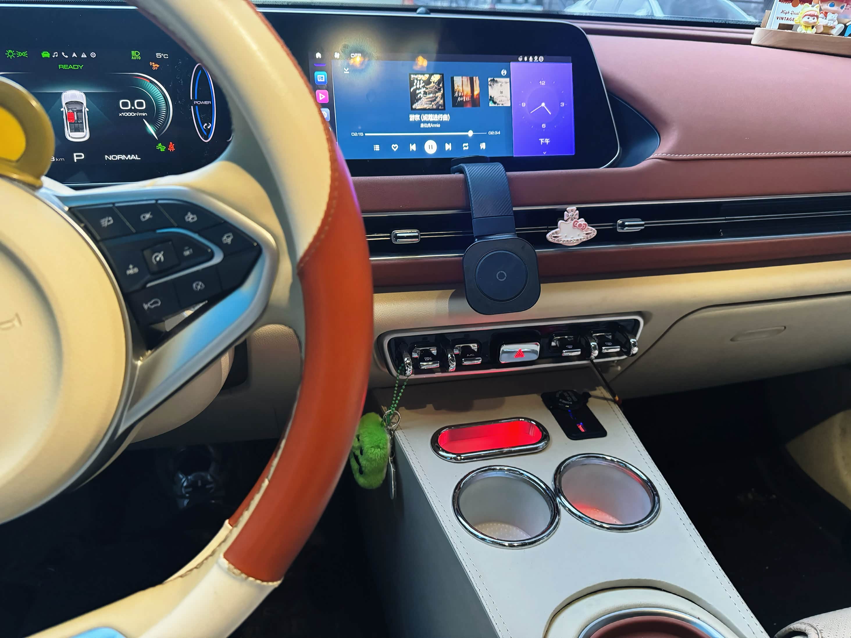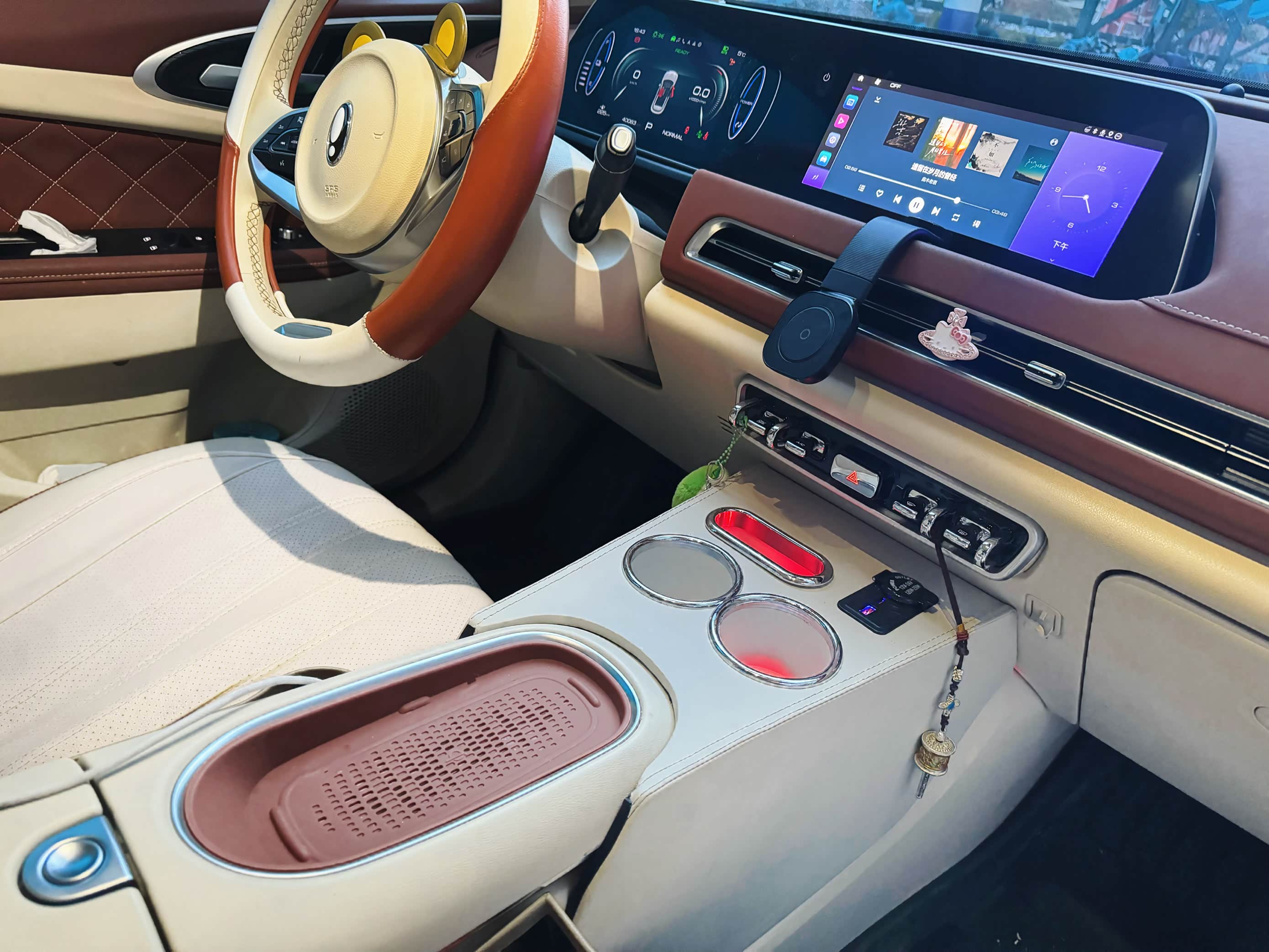 [ahl_心动]No.1[ahl_心动]就是新入手的这个加高前置置物架,真滴绝啦,之前开车的时候想拿水杯还要弯腰下去拿,尤其是来大姨妈的时候,我是真的不想动啊,只想上车坐好一动不动,有了加高置物架,方便多了,而且开车弯腰拿东西也很危险,姐妹们问的最多的就是放上水杯什么的,会不会挡出风口和按键,答案是不会,因为离空调按键离得还是有些距离的,置物架带两个U***充电口,一个点烟器,原车前面有两个U***,后排有一个,所以现在充五个手机都不是问题!也解决了后排乘客充电的忧虑~