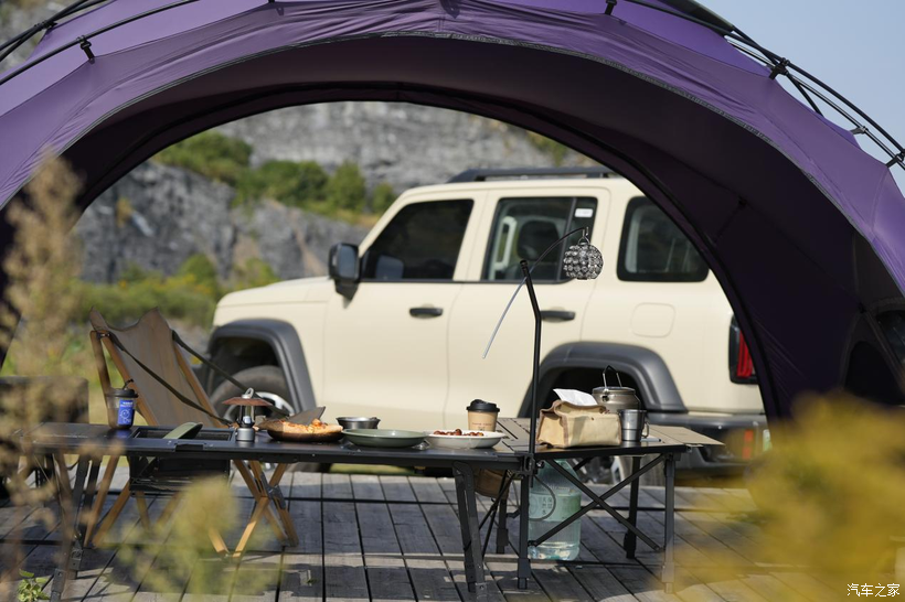 搭起帐篷,将坦克300后备箱里准备好的烧烤用具拿出来,在这里,我搭成了临时的操作台。接上后备箱的220伏电源,轻松烤起了肉,以前户外烧烤总担心电力,现在这6千瓦的外放电功能让小营地顿时有了家的便利。