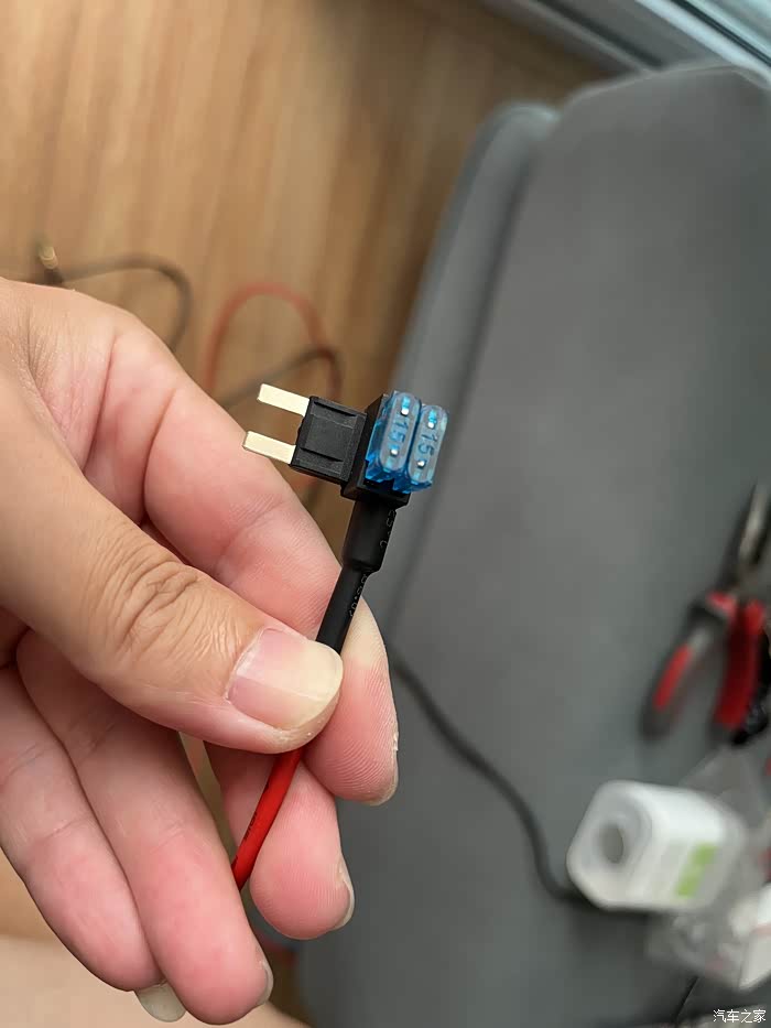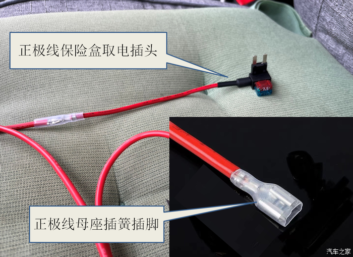 点烟器母座的接线只需要用到中学物理的简单电路知识就足够了,只有一路正极线和一路负极线,因为我是从车内保险盒取电,负载功率不可能太大(12v系统点烟器的供电一般最大也就180W,线路电流最大也就15A),线材选用2.5平方的铜线就足够了(太粗的线虽然负载效率更佳但是个别缝隙走线不容易塞进去),线的米数根据走线距离和路径而定。