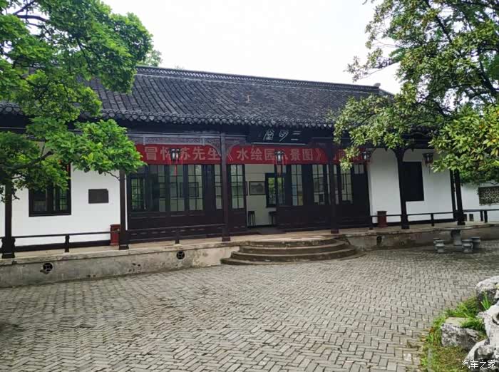 三明堂并非水绘园原建筑,而是晚清时期的建筑,由吴昌硕题字,当时作为 如皋 的民众教育堂,现在作一些临时展览。我去的时候,里面是冒氏后裔、画家冒怀苏的《水绘园八景图》展览。