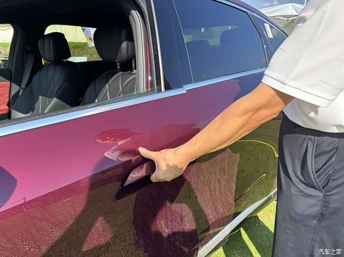 门上的装饰材料和车外观遥呼相应蛮和谐的。