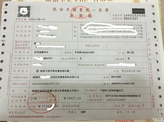 这是人生第一部车,之前一直在用朋友的,论坛常逛,提车作业看过不少,每次看到提车作业都是很羡慕,现在到自己的了却不知道说些什么好,那就简简单单吧,从看车到买车花的时间并不算多,看车也没有怎么去看,就6月份的时候深港澳的车展莲续看了几天,最终LP看到展台上的RAV4,坐进去之后对我说就这部吧,好,就去谈细节了,当时就订了2.0风尚,送的东西不算多,全包下来上外地牌20这样,交了5000订金,然后就是等车了,等啊等.....到了7月中旬查到新款车的样子,并看了视频,看着车也还没到,然后根4儿子说能不能换新款,结果SSSS那边同意换,但上市之后就按厂家指导价去交易,没多说,我就说到时候再说吧,然而新款上市之后,价格感觉还可以,就从新选择了智尚,24.5 全包,签了合同 结果第二天SSSS那边就来电话了,说是价格计错要加1万,果断不行啊,对方让我要不考虑2.5 然后当然就是各种交涉,到最后火了打了厂家投诉电话 才能解决 之后根LP商量了下要不换2.5吧,那就换吧,差两万,又从亲戚那支了两万过来,又去改单去了,总之到最后是买贵了,本来想想不要订金也罢去别家买算了,LP说什么都谈妥了就不换了吧,车到店第二天就去验车交款了,就一台车可以验,不知道是不是这样,交完款几天之后,自己去办的临牌 然后把所有资料交回给SSSS让他们去办铁牌的事,车都还没去上牌地车管所验车拍照,我先开回家用着先了