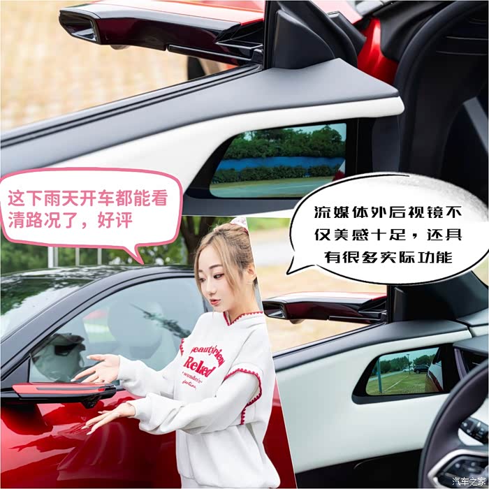 值得一提的是这车还用的是电子外后视镜,不仅看起来科技感爆棚,也很实用,像是一些雨雪天气的情况下,它仍然能够保持一个比较清晰的影像。