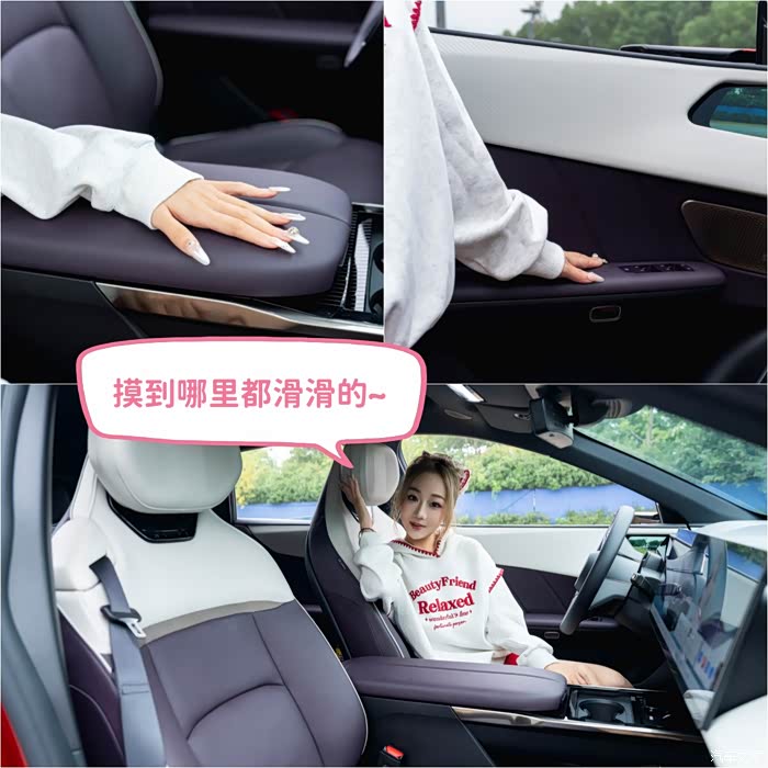 这车内部用了大量柔软皮革材质,触手所及的地方摸上去都很舒服,而且很有质感,但最让莉莉惊喜的是座椅。