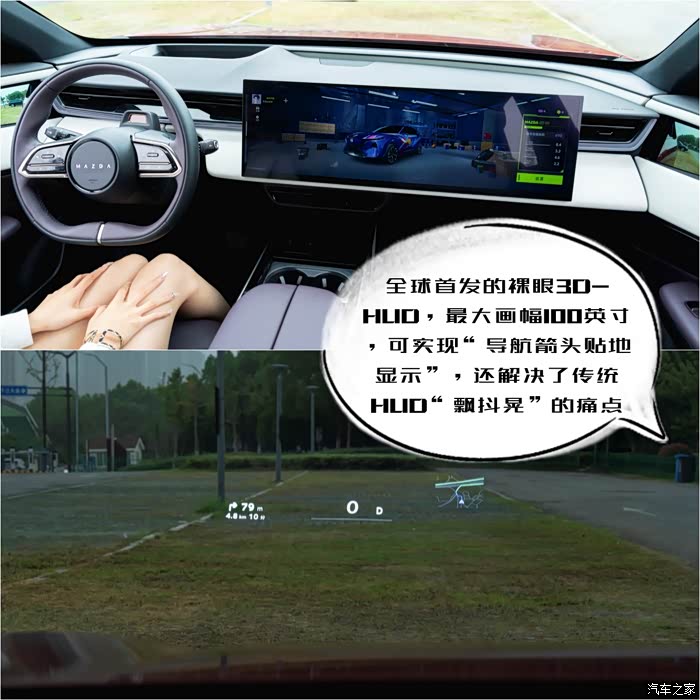 不过很多人会像莉莉一样奇怪,仪表盘去哪了,因为这车用大尺寸的裸眼3D HUD取代了,配上那个一体式大屏,感觉更沉浸了。