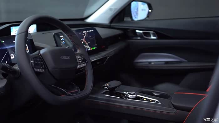 空调出风口采用钢琴烤漆,真皮打孔的运动座椅