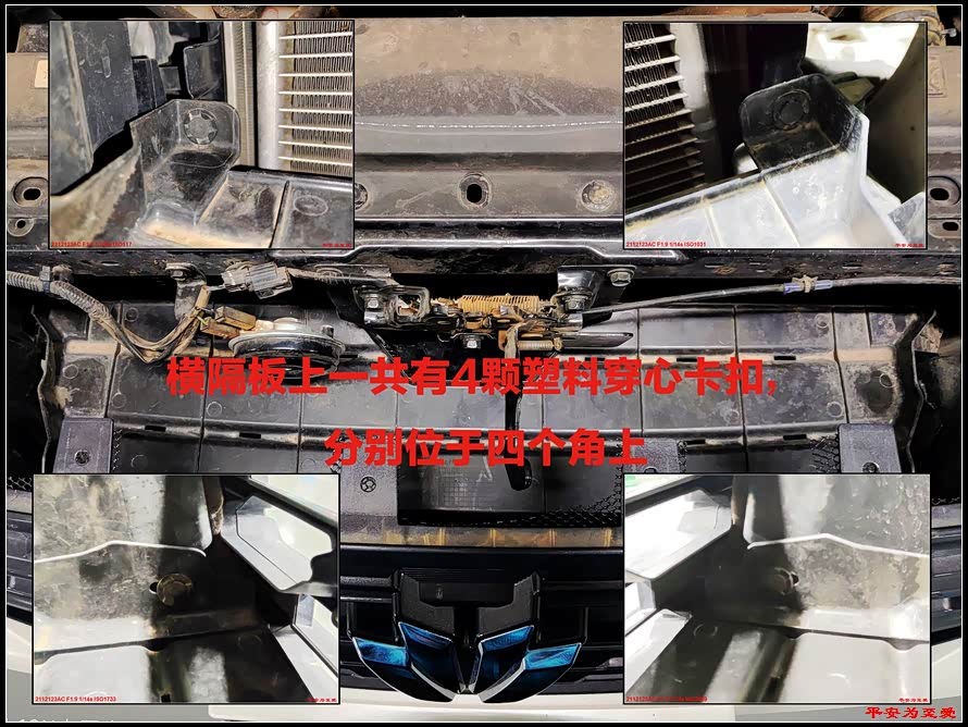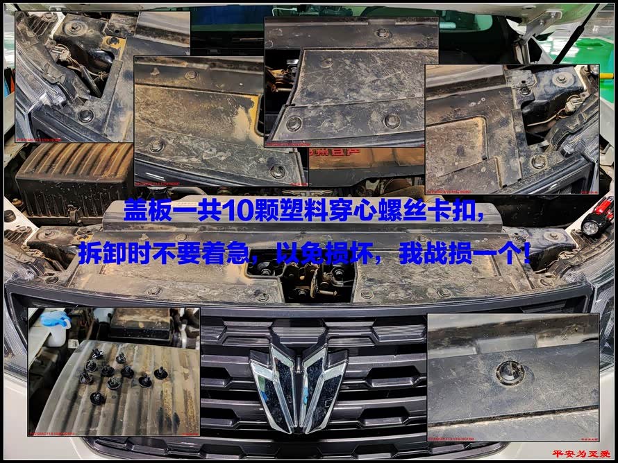 商家发货挺快,周二下单,周四就收到了,利用周末时间,自己开始安装。赠送的中网上的防虫网是要装在中网内侧的,所以第一件事就是要拆中网,这个工作对于我来说是头一次,好在车友专门发了个视频给我,讲解了一下怎么拆。现在的车和我当年的车不一样了,发动机舱里有好多装饰板,不像当年的车,打开机器盖子就能直接看到发动机和水箱,所以要先拆装饰板,第一层的装饰板很好拆,一共10个塑料卡扣,用一字改锥撬一下就行,但不能着急,要顺着劲撬,我就心急了,战损了一个卡扣。