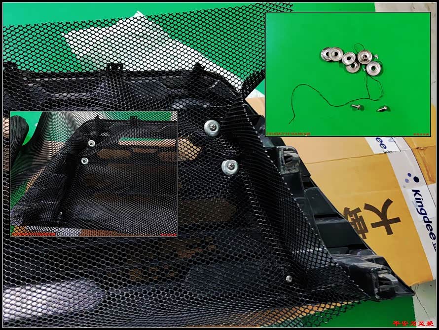 研究了一下怎么把这防虫网固定在中网上,开始担心就那几个小螺丝固定不住,特意找了些垫片,固定后总觉得哪不对,而且网面也不平整,翻看了一下车友的安装作业,才知道我的固定方式可能不对。