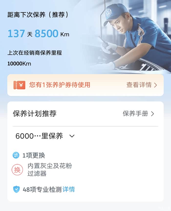 保养成本方面,也让我很是满意,首次保养是免费的,后续每次一万公里的保养,大致花费300元左右,我们这边还有保养的团购套餐,4次基础保养+刹车油更换,550元,平均一次140元不到,真是实惠到家了,太省钱了。