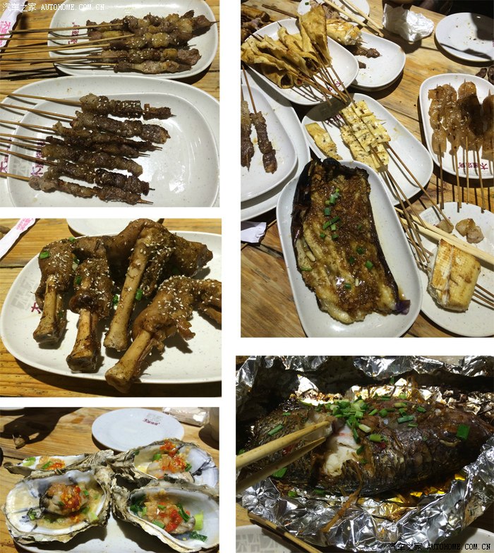 小正同学和他媳妇甜甜带我们去角头地铁站附近去吃烧烤,这里的烧烤比较有南方特色,右下的鱼肉多无刺,甜甜同学特别推荐,不过现在忘了鱼叫什么名字,左中的羊蹄看上不辣最后吃得直冒汗。右上的烤茄子在南方常见做得比较好吃。左下的烤牡蛎晚上十点过后半价。