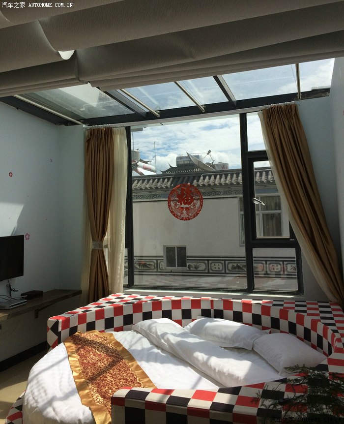 介绍客栈,三楼楼顶的星空房,淡季团购价才不到两百元,上面的幕布可以完全打开,晚上一抬头就是满天繁星。这里的标准间平时淡季团购价也才一百元左右。