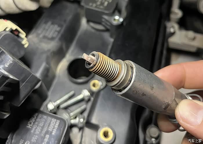 火花塞垫老化了。
