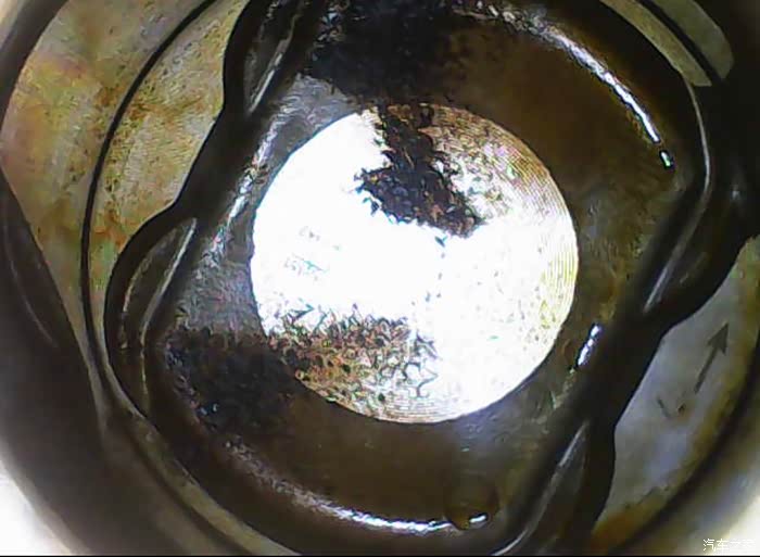 会不会是烧机油啊?跟气门油封老化机油漏到燃烧室的样子很像,上半部那麽干净应该不是气门室盖垫漏油造成的。不然就是你用PEA洗下来的积碳卡在那里。