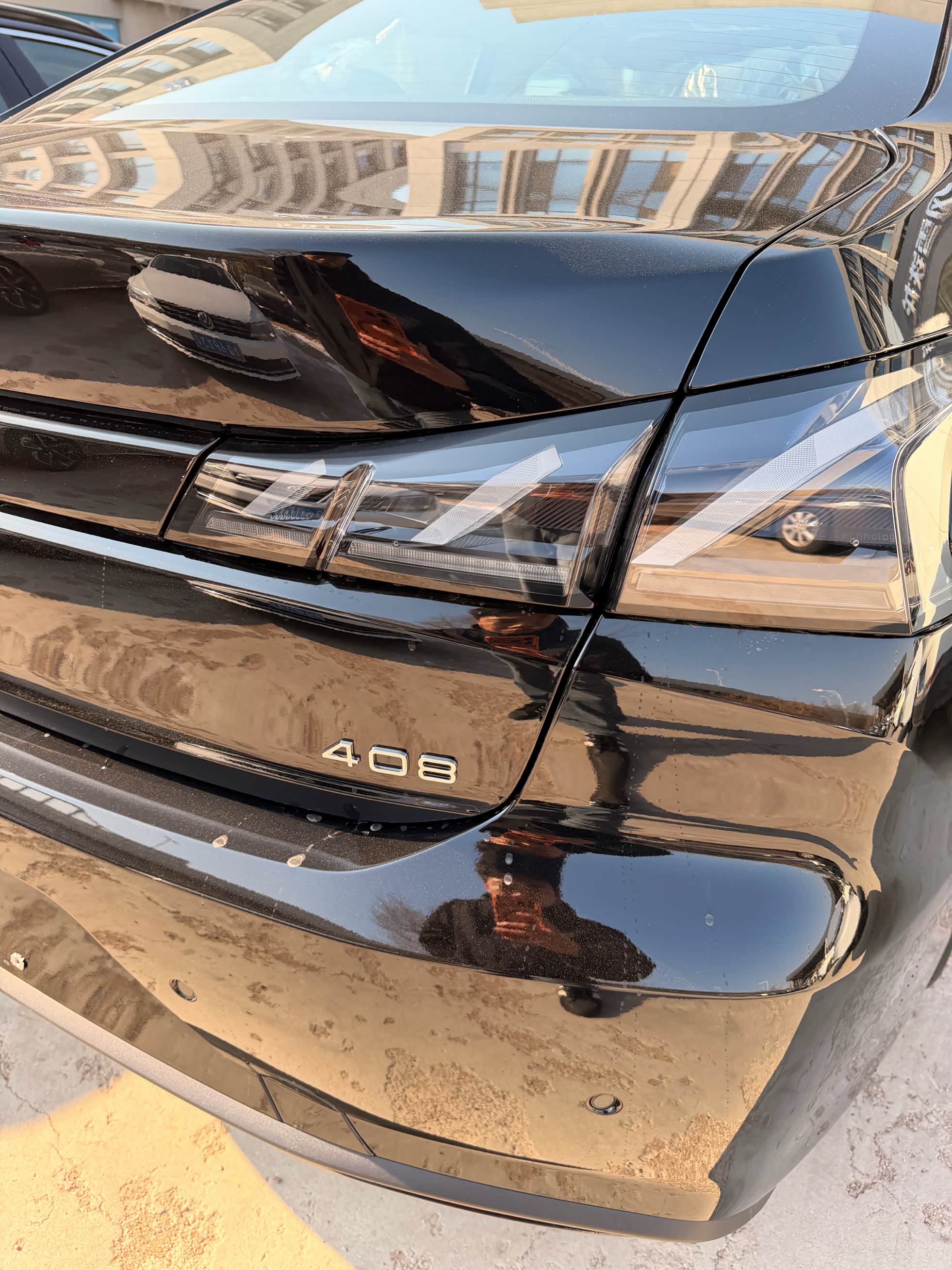 选车的时候其实对比了不少同级别家用车,最后还是被法系的设计和用料打动了,本来街上其实他能看到的白色灰色的408比较多,来到4S店,一看听销售说408还有黑色款,于是销售就带我去车库看了这个黑色的408一眼就看中了沉稳大气,还有点低调的运动感就是之前特别流行的黑武士配色,而且408的外观配上黑色虽然小众,但是不大,虽然知道黑色不耐脏,但是这个颜值深深地打动我了。