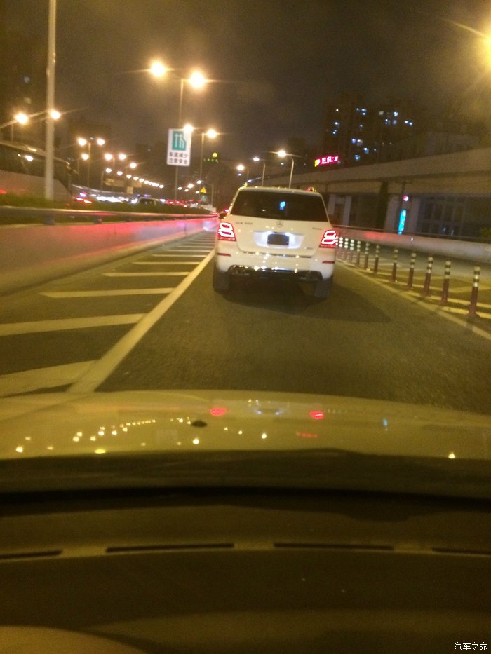 销售耐心给我们讲解了2个多小时每个部件如何操作,还陪我们外面试驾了一圈,加好油,带大白回家。我开着小车跟在后面,拍了这一张模糊的照片之后,就跟不见了。