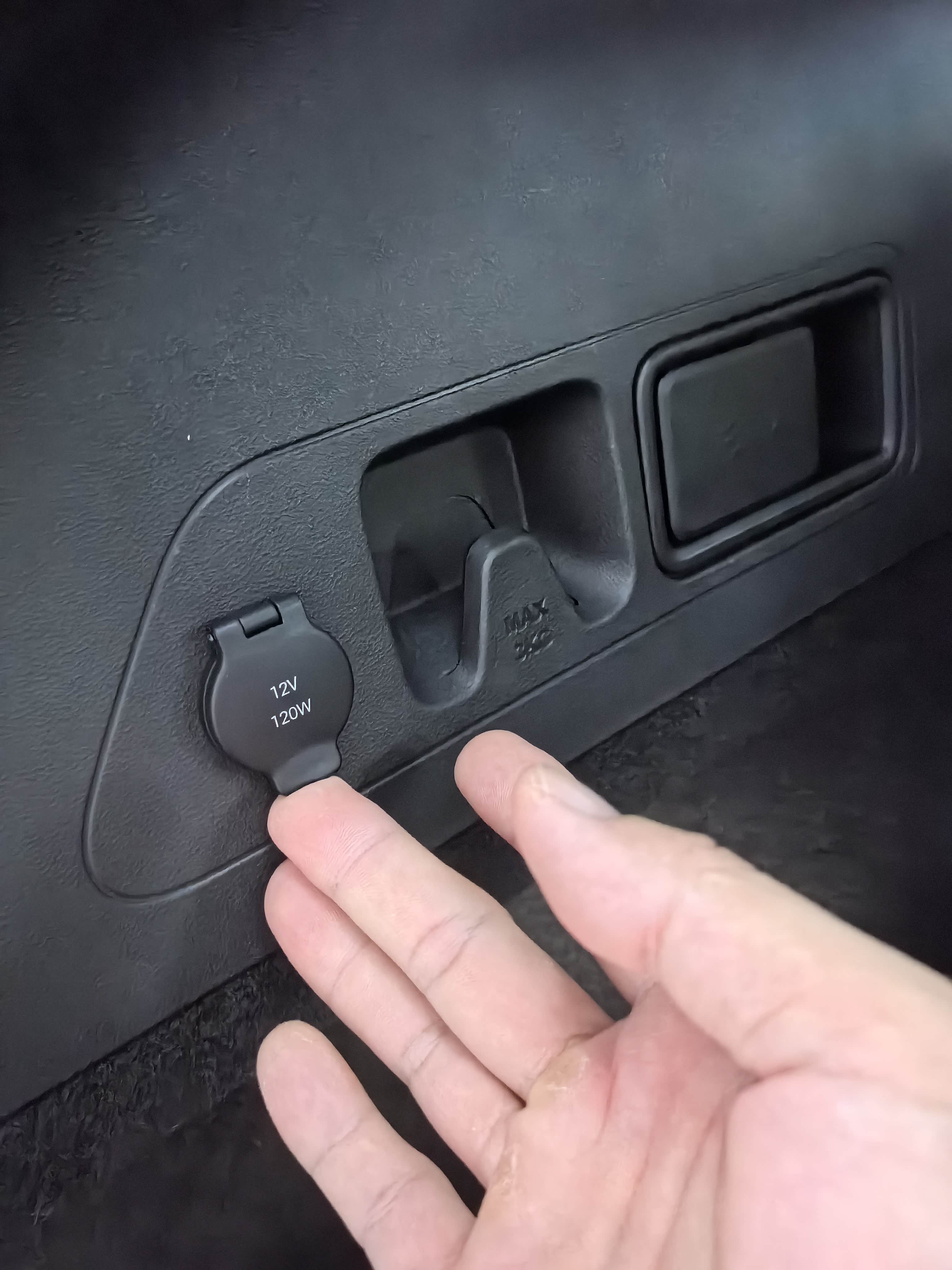 ④后备箱目测能放得下4个27寸的行李箱(叠高),这个后备箱上层空间挺充足的,只是其底部隐藏空间只能放些小物件,后备箱底部空间利用率不高。