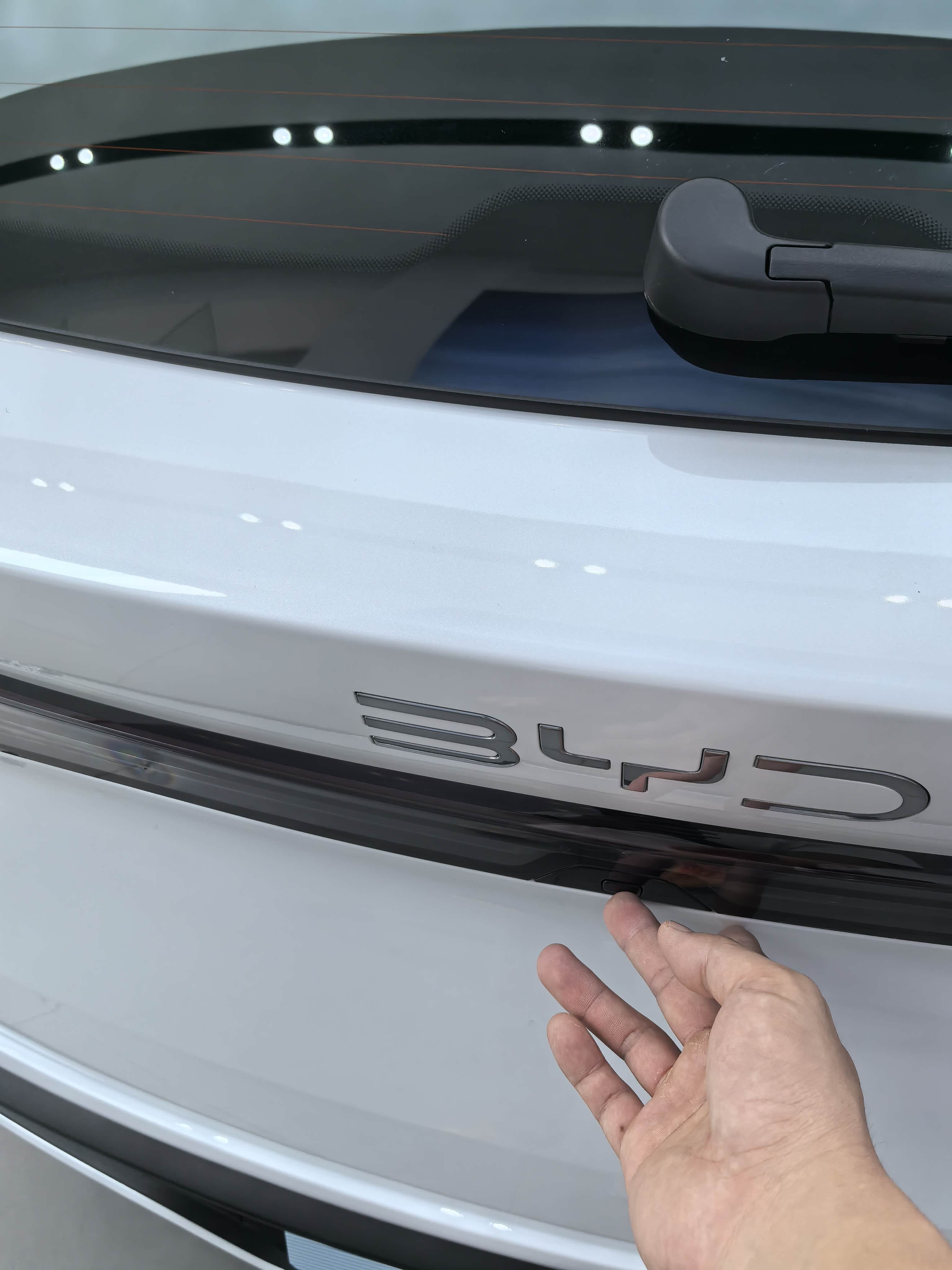 ②后备箱开启按钮在车尾贯穿式车灯中间,位置刚好在我的腰部,不需要弯腰打开,开起来比较方便。