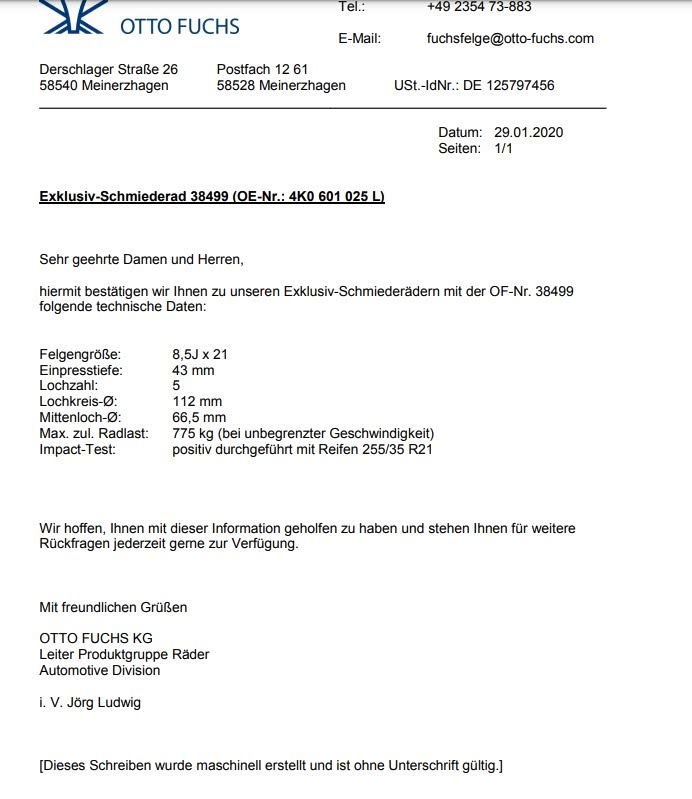 不同于奥迪家其他“原厂轮毂”,往往是同样造型不同尺寸用在不同车型上(比如加钱选装的Audi Sport可能从A4、Q5、A6、A7、Q7一路都有,就是尺寸区别),而现在这个轮毂它只有21寸一个规格数据(两种配色),由著名的Otto Fuchs代工的独家锻造(最早的铝合金工厂之一,世界第一套锻造就是他们做的,用在初代911,在911圈子里还挺有名,如今专门给欧洲车厂配套锻造轮毂)
