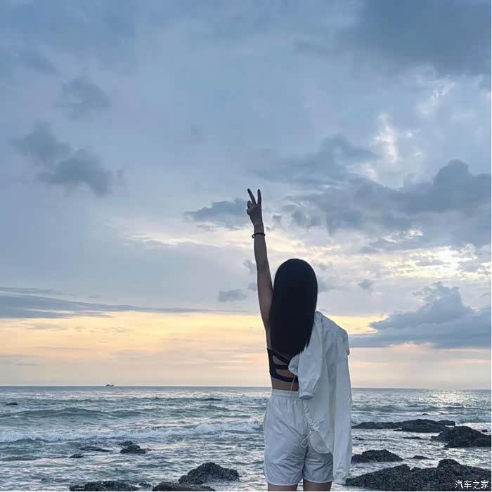 手机充着电,边开车边去海边看看晚霞喽~